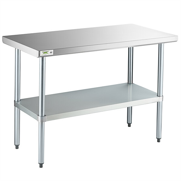 MESA DE TRABAJO 24 X 48 PG SUPERFICIE EN ACERO INOX 304 CAL. 18 REPISA Y PATAS GALVANIZADA MARCA REGENCY