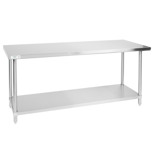 MESA DE TRABAJO 24 X 72 PG SUPERFICIE EN ACERO INOX 430 CAL. 18 REPISA Y PATAS ACERO INOX MARCA REGENCY