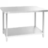 MESA DE TRABAJO 30PG x 60PG (76 X 152 CM) SIN RESPALDO CUBIERTA DE ACERO INOXIDABLE 304 CAL 16 Y ENTREPANO EN ACERO INOXIDABLE 430 REGENCY