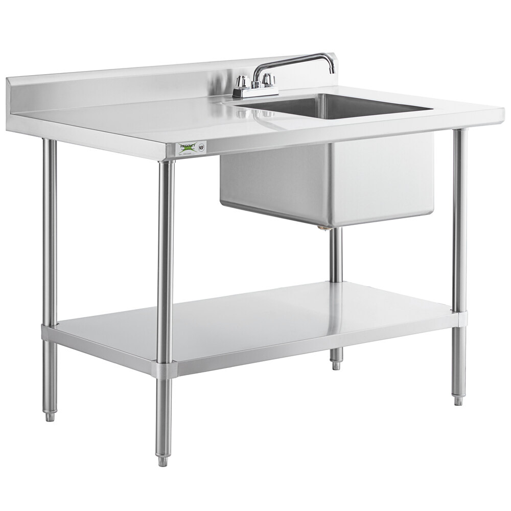 MESA DE TRABAJO CON FREGADERO UNA TARJA 30 x 48 PG ACERO INOXIDABLE EN CALIBRE 16 CON PATAS EN ACERO INOXIDABLE CON ENTREPANO TARJA A LA DERECHA INCLUYE LLAVE MEZCLADORA REGENCY