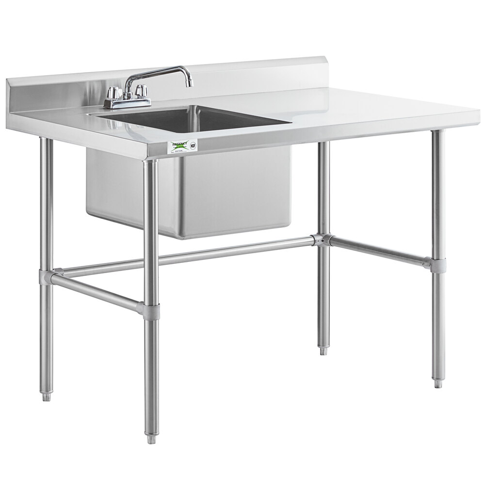 MESA DE TRABAJO CON FREGADERO UNA TARJA 30 x 48 PG ACERO INOXIDABLE EN CALIBRE 16 CON PATAS EN ACERO INOXIDABLE SIN ENTREPANO TARJA A LA IZQUIERDA INCLUYE LLAVE MEZCLADORA REGENCY