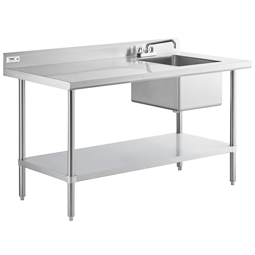 MESA DE TRABAJO CON FREGADERO UNA TARJA 30 x 60 PG ACERO INOXIDABLE EN CALIBRE 16 CON PATAS EN ACERO INOXIDABLE CON ENTREPANO TARJA A LA DERECHA INCLUYE LLAVE MEZCLADORA REGENCY