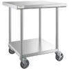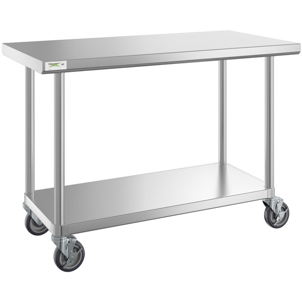 MESA DE TRABAJO CON RUEDAS 24PG x 48PG (60 X 121 CM) CUBIERTA DE ACERO INOXIDABLE 304 CAL 16 Y ENTREPANO EN ACERO INOXIDABLE 430 CAL. 18