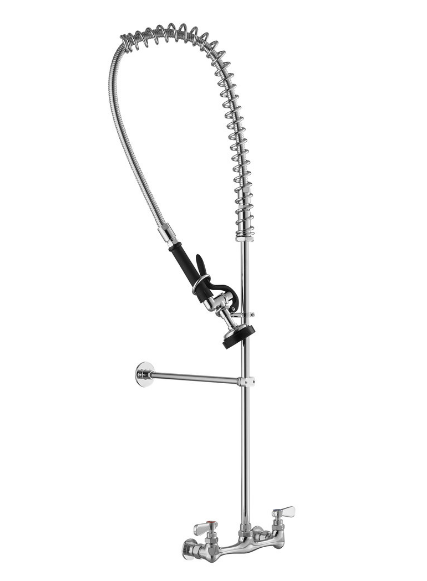 MINI LLAVE DE PRELAVADO A PISO, MEZCLADORA CON CARTUCHOS DE CERAMICA, SPRAY STANDARD, TUBO, RESORTE Y BRACKET DE PARED, NSF