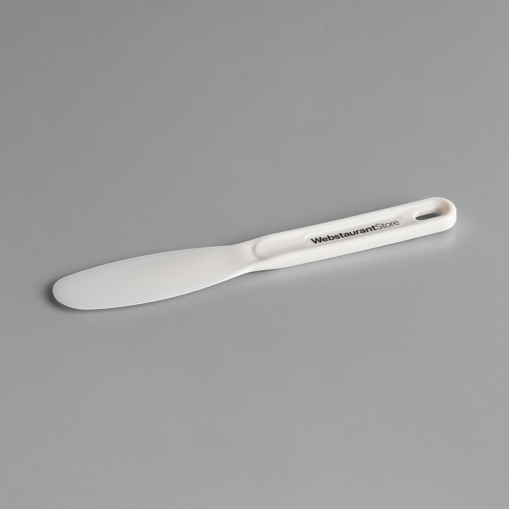 PALA PARA UNTAR 7 3/4 PG DE PLASTICO POLIPROPILENO REUTILIZABLE CON LOGO WEB COLOR BLANCO