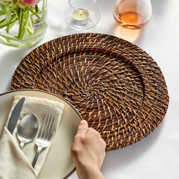 Plato Base Color Rattan Cafe Obscuro de 33cms Material Rattan Acopa (VENTA POR MULTIPLOS DE 24 PIEZAS)