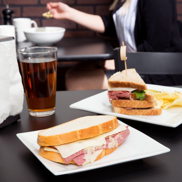 Plato Cuadrado de 20.3 cms Blanco Brillante Marca Ecor (24 PIEZAS POR CAJA)