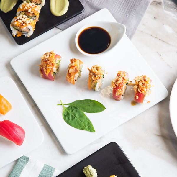 Plato Cuadrado de 22.9 cms Blanco Brillante Marca Ecor (6 PIEZAS POR CAJA)