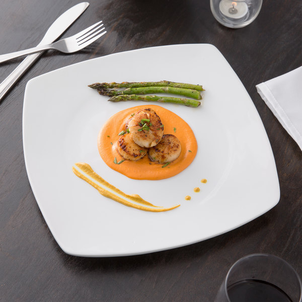 Plato Cuadrado de 27.9 cms Blanco Brillante Marca Ecor