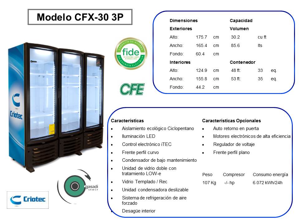 REFRIGERADOR VERTICAL CRIOTEC CFX-30 3P