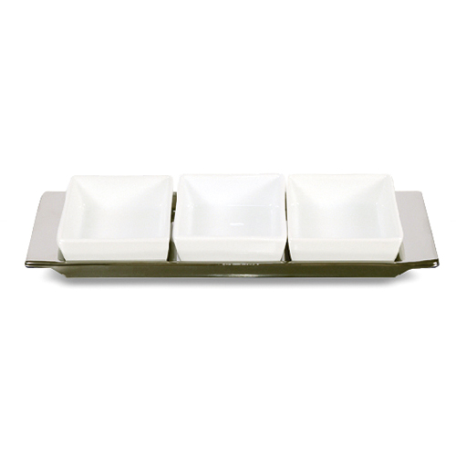 SALSERAS + BANDEJA 3 PIEZAS RECT. 30 X 9 CM AJ3SCH MKM