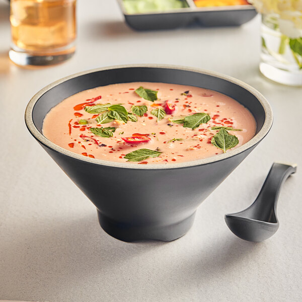 Tazón De Melamina Negra Mate Con Borde Marfil 28 Oz. Acopa Ugoki (Precio Por 12 Piezas)