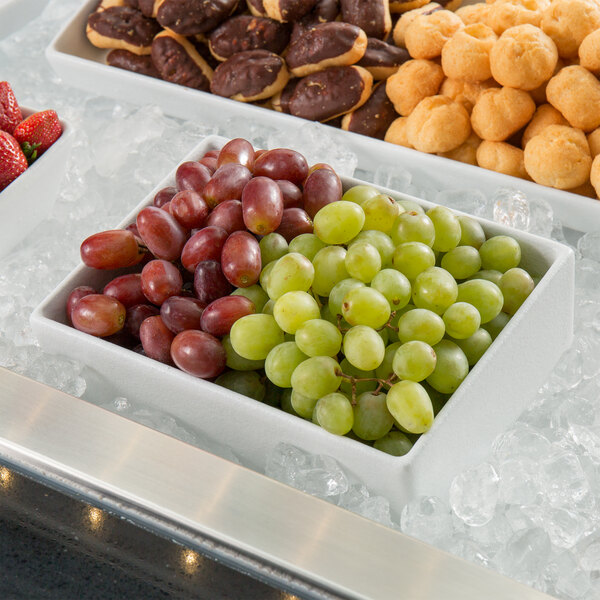 Tazon Rectangular para Ensaladas 2.4 Qt (2.27 lts) Costados Rectos de Aluminio Recubierto de Resina Blanca Medida: 25.4 x 17.7 x 7.6 Cm Modelo Bugambilia COMP02WW Marca GET