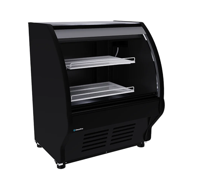 Vitrina Exhibidora VCM100 De Cristal Curvo Con Cubierta De Acero Inoxidable 6 ft3 Frente 99 x Fondo 85 x Alto 121