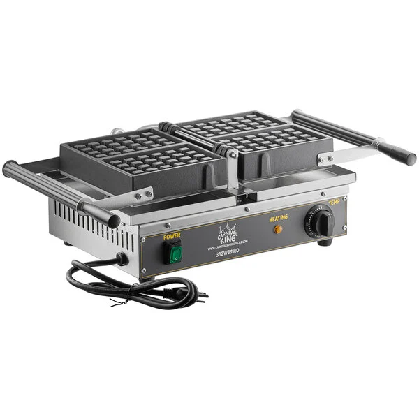WAFLERA CUADRADA DOBLE TIPO BRUSELAS 40 WAFFLES/HR DE 1,500 W 120 V MEDIDAS: 22 13/16 X 12 5/8 X 7 1/3 PG