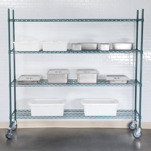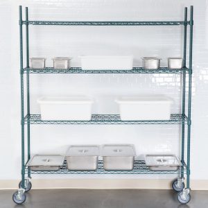 Estante de 18″ x 60″ Verde Epoxico con Postes de 64″ y Ruedas