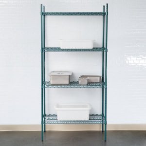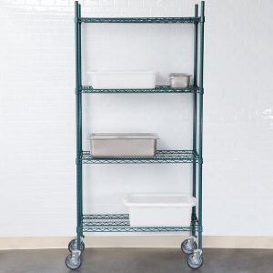 Estante de 18″ x 36″ Verde Epoxico con Postes de 64″ y Ruedas