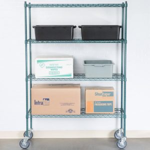 Estante de 18″ x 48″ Verde Epoxico con Postes de 64″ y Ruedas