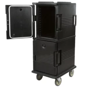 CAJA TERMICA PARA ALIMENTOS DOBLE CON RUEDAS 21 1/2 X 33 1/4 X 63 3/4 PG RECIBE 26 CHAROLAS