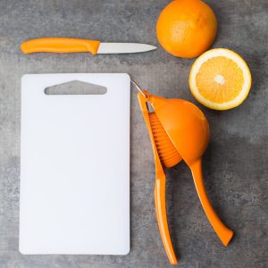 KIT PARA BAR CON TABLA 10 X 6 X 3/8 PG, CUCHILLO Y EXPRIMIDOR COLOR NARANJA CHOICE