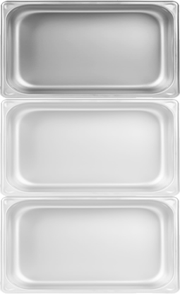 Los Insertos de Acero Inoxidable se utilizan para Baños María al vapor, Son aptos para lavavajillas y son ideales para banquetes de gran volumen y presentación de alimentos en la organización de fiestas y Eventos. El desinfectar los Insertos es fácil. Los Insertos tienen la certificación NSF que se pueden limpiar rápidamente. Independientemente del tipo de negocio que opere, las charolas de Acero Inoxidable son una opción versátil y rentable. Para productos relacionados, consulte nuestras Separadores de Insertos para mesas Caliente, Insertos y tapas de plástico para alimentos e Insertos de Policarbonato. Si se pregunta dónde comprar Insertos de acero inoxidable y Insertos para hoteles a la venta a los precios más bajos. Tambien se le conocen como Charolas de Acero Inoxidable.